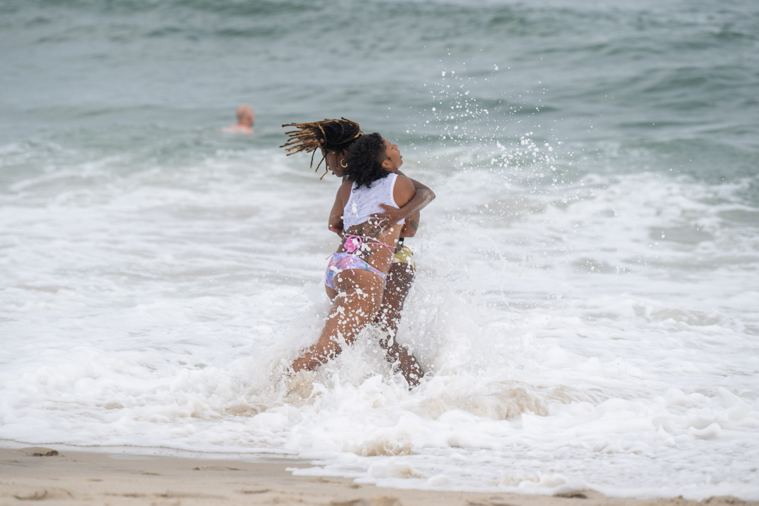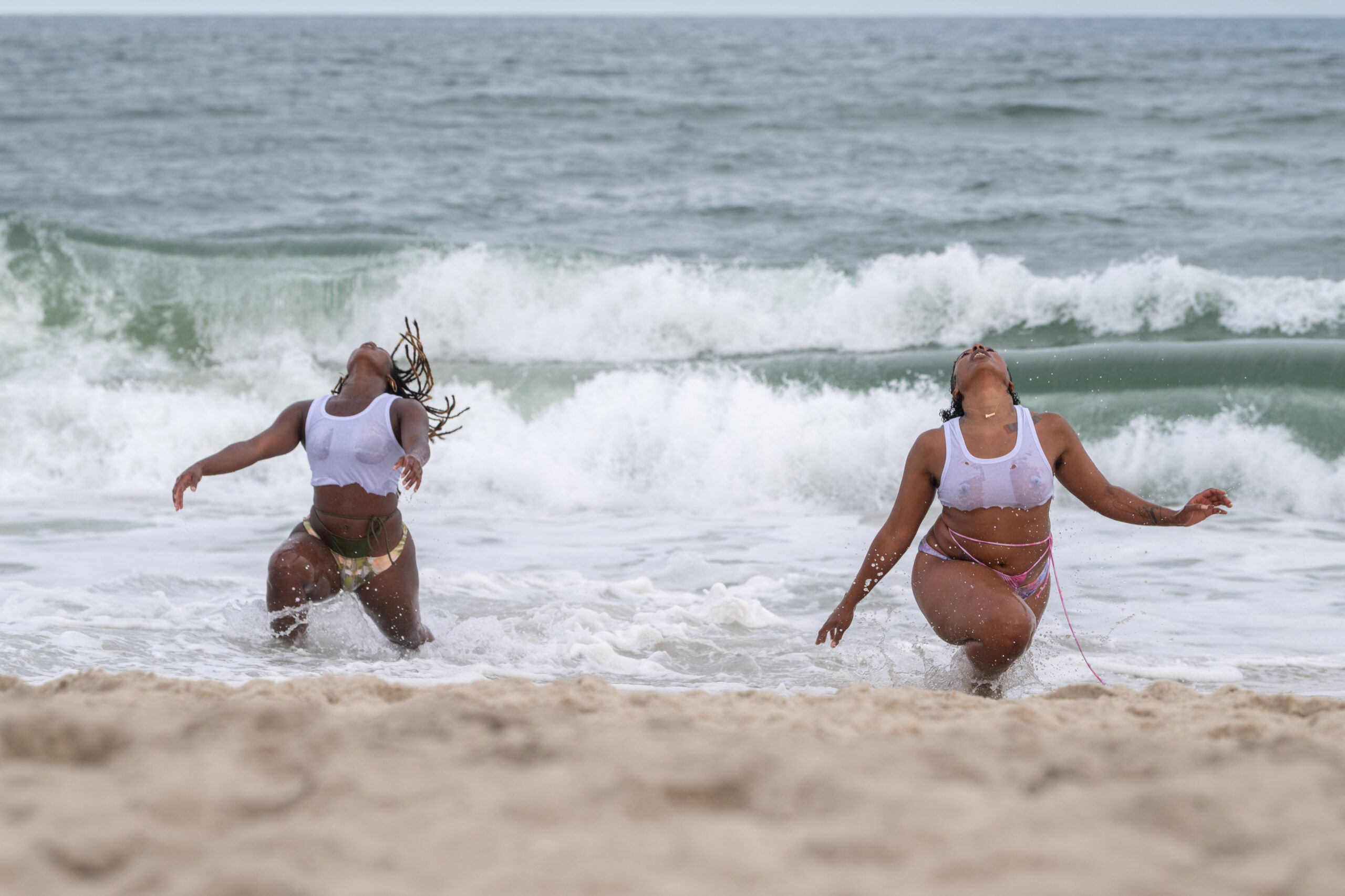 Two black femmes on the beach test the range of their autonomy and boundlessness. They traverse through the ocean and land and find versions of themselves to reckon with and find home in.
